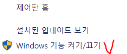 -> windows 기능 켜기/끄기