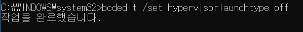 이 과정을 했는데도 해결이 안됨... 그 후로 좀 포기했다가 하이퍼v를 끄는 다른방법이 있대서 따라해 봤다