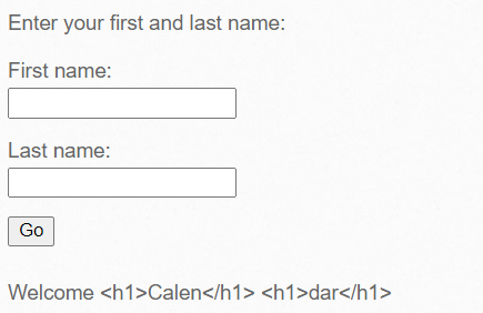 First name: <h1>Calen</h1>